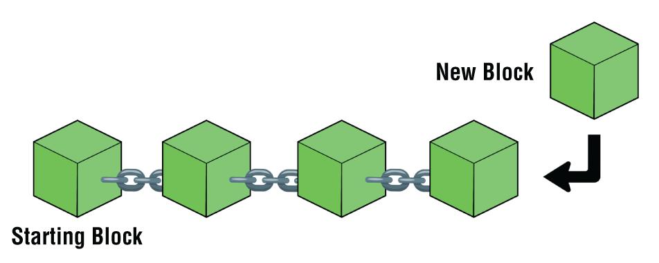 When cryptocurrency transactions are verified, for example, with Bitcoin, the verification is conducted on a group of transactions, not a single transaction. This batch of cryptocurrency transactions is known as a block. Each block has a certain storage capacity. After the block is filled and the transactions have been confirmed, the block of transactions is then appended to the previously verified block, creating an ever‐growing chain of blocks: a blockchain. The process repeats, and the blockchain grows longer and longer (see Figure 2.1).