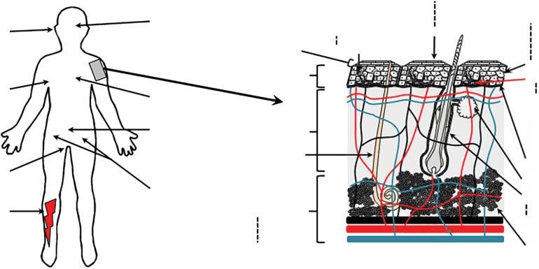 Figure1.2 (a)Approvedandunderdevelopmentoftransdermaldrugsandtheirrecommendedsiteofapplication.(b)Close-upofhumanskinandvarioussites andtargetswithintheskin.Source:Bensonetal.[21].©2019EurekaScience.