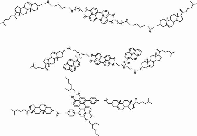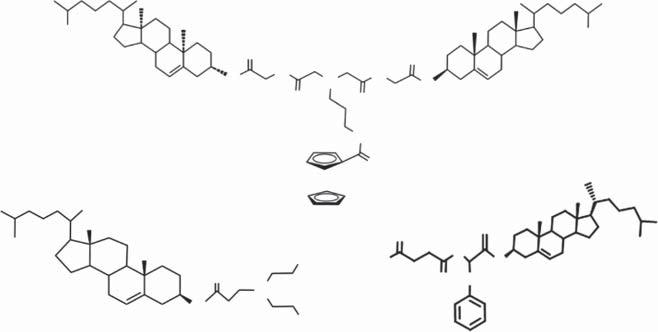 In2009,ProfessorFang’sgroupreportedthefirstmoleculargelator-basedgel emulsionstabilizer(compound8,Scheme1.7)[46].Thegelatorcontainstwo cholesterolgroupsandhasastronggellingability.Withthegelator,different typesofoilscanbegelated,including n-heptane, n-octane, n-nonane, n-decane, kerosene,diesel,andgasoline.Basedonthegels,aseriesofgelemulsions(W/O type)weremadebyintroducingwaterintothegellingsystem.Microscopicstudies andrheologicalmeasurementsuggestedthatthegelemulsionsarestableandhave typicalfoamingstructure.Gelatorsbasedonthecombinationofcholesteroland ferrocenehavealsobeenproventobecapableinthestabilizationofgelemulsion. Somecholesterol-ferrocenegelatedgelsareresponsivetomultiplestimuli.