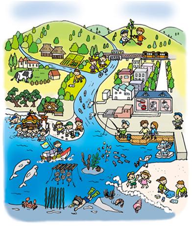 Figure 1.5. The concept of Sato-umi, where humans interact with the aquatic environment for mutual benefit: (a) Japanese Ministry of the Environment (2015); (b) Yanagi (2007)