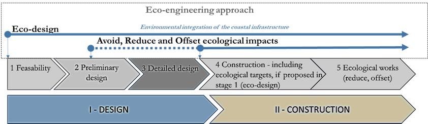 12 The eco-design approach begins in the early stage of the project, in comparison with usual eco-engineering treatments which are based on mitigation resulting from environmental impact assessments or ecosystem damage. They are mainly considered after the design of the project to reduce or offset significant negative impacts.
