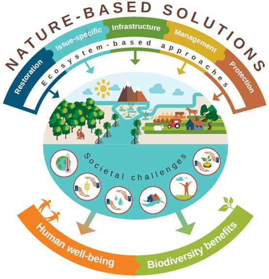 Figure 1.3. Diagram of the definition of nature-based solutions, proposed by the IUCN, where “conventional” infrastructure is cited as an application (Cohen-Shacham et al. 2016). For a color version of this figure, see www.iste.co.uk/pioch/marine.zip
