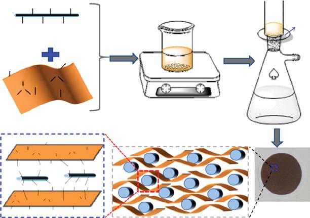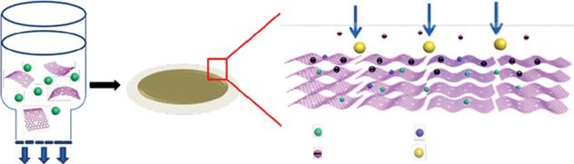 A 3D graphene oxide hydrogel membranes (GOHMs) designed by gelation of GO with ferrous ions through vacuum aided filtration and their application shown in Figure 1.10. In this work, ferrous ions assisted as cross-linkers, which enhanced bonding strength between