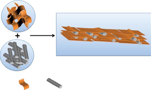 In this work, the attapulgite (ATP) nanofibers/GO composite membrane is self-assembled by mixed solutions containing both ATP and GO shown in Figure 1.8. ATP nanofibers intercalated on GO nanosheets interlayers, acting as laminate structures for effectual trails for water molecules GO. Besides, ATP nanofibers able to widen mass transfer channels and able to promote hydration capacity. The permeate flux from 28.64 LM2/h/bar for GO membranes (control) to 221 LM2/h/bar for ATP/GO membranes was observed and showed extraordinary rejection rates for organic dye molecules such as CBB R250 99.88% and 99.93% for TMPyP [26].