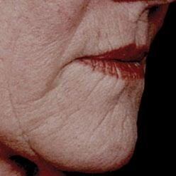 My very first case of skin needling was to correct upper‐lip creases. The patient was put onto vitamin A cosmetics and after three weeks I used regional anesthesia to numb her upper lip and I needled her upper lip intensively at 1.0 mm with the pen‐style device. I covered the needled area with skin‐colored micropore and asked her to apply the vitamin A cosmetics to the surface. She swelled considerably and after about five days I removed the micropore tapes and her lip looked intact but rather swollen. A month later I could see that the lip wrinkles looked better but not sufficiently so; therefore I advised a second needling done in the same way and after another month I felt that a third needling would give us a good result. By the end of the fourth month I was happy to sit back and wait for improvement. At that time, I realized that unlike laser treatments, where the results were obvious and best at about a month, with skin needling one needs to wait at least six months because there is progressive and well‐defined improvement month after month. After that the changes are more subtle. In my first case, I was able to follow up for five years and I can say that if you do intensive needling together with applying vitamin A cosmetic skin care, then the excellent result can be maintained for at least four years, as shown in Figure 2.1.