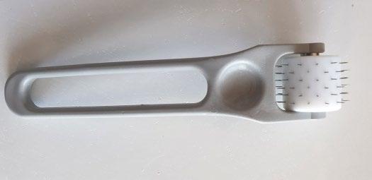Figure 1.1 Original microneedling roller created by Dr. Desmond Fernandes in 2001. Fixed needle length of 3.0 mm multiuse roller; designed for reuse on a single patient for approximately six treatment sessions. The original rollers were not able to be autoclaved at that time. They were sterilized by soaking in instrument cleaning fluid. Source: Dr. Desmond Fernandes.
