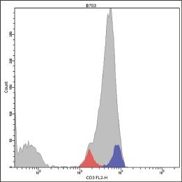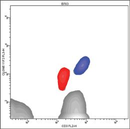 Sometimes it is possible that the bimodality of the CD3(+) peak is due to the presence of a clonal T‐cell population, homogeneously expressing the molecule at an intensity that differs from