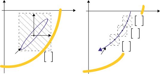 The functions F1 and F2 are non-linear, as in the case of small vibrations around the static equilibrium point. Based on the above at each time point of the trajectory tk−1, tk, tk+1, etc., and based on the determined stiffness and damping coefficients, it is possible to determine the increments of displacement Δx and Δy in a stepwise procedure. The accuracy of the calculation will increase as the time step decreases, i.e. as the areas in which the stiffness and damping coefficients can be assumed to be constant decrease. This relationship will be true until a certain point, and with too small time steps the accuracy of the calculations will be limited. Figure 1.2 illustrates the difference between linear and non-linear analysis based on stiffness and damping coefficients. The hatched fields show the areas where the coefficients are approximately constant.