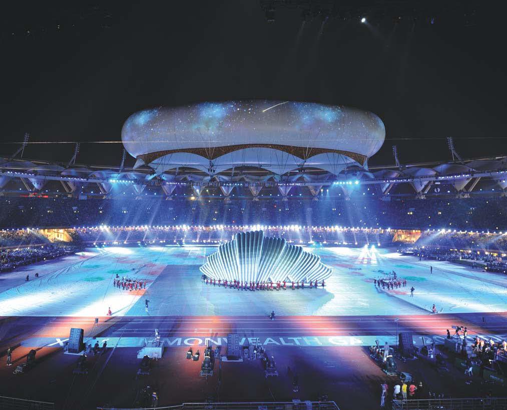 There was no room or capacity to hang the technical hardware required for a big outdoor show at Delhi’s Jawaharlal Nehru Stadium (Gerkan, Marg & Partners, 2010). STUFISH’s huge, floating aerostat was the solution. It provided a 360-degree projection surface and became the unique signature of the show, which depicted various aspects of Indian life and history and blended art and technology into a single entity.