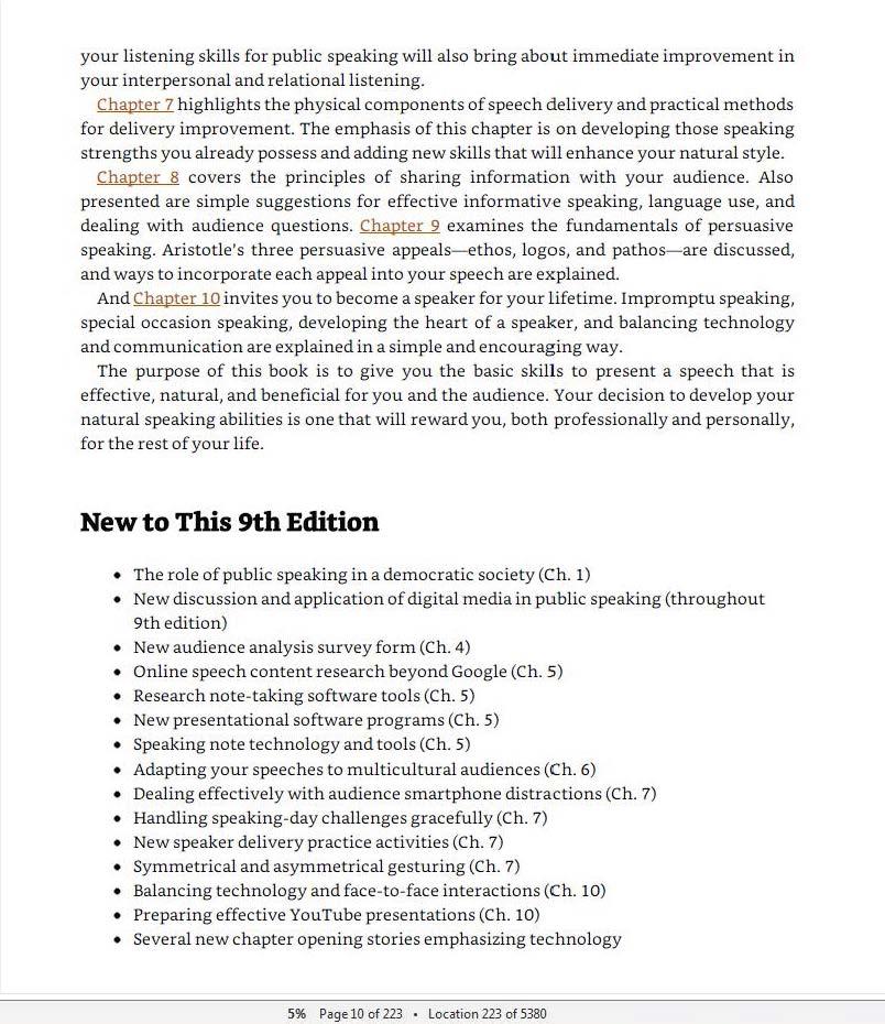 • New d isc uss ion and application of d igi tal media in pULb lic speaking (throug hout 9th edition)