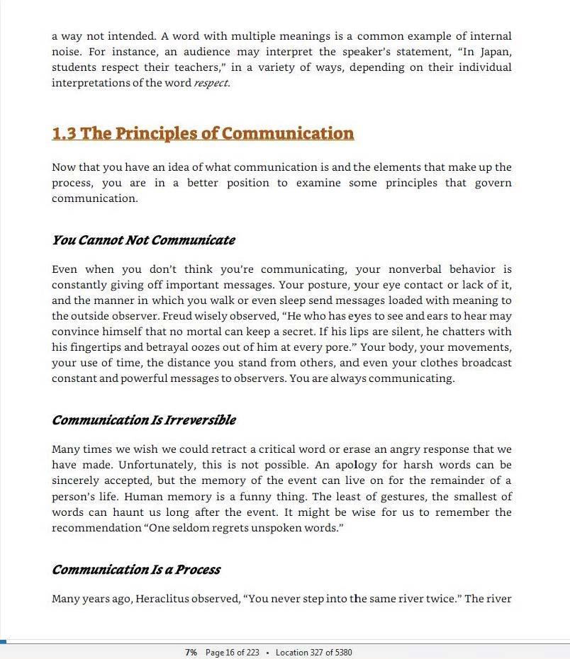 Now t h at yo u have an idea of w h at communication is and the e lements th at make up t he process, you are in a better position to examine some principles t h at govern communication.