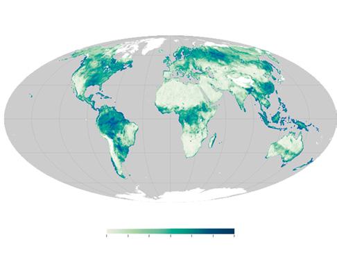 Figure 1.4 Soil moisture observation by NASA’s Soil Moisture Active Passive (SMAP) satellite. (a) Soil moisture observation of the United States. (b) Global view. (Courtesy of NASA’s earth observatory: https://earthobservatory. nasa.gov/images).