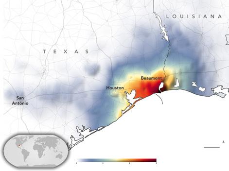 Figure 1.1 Rainfall map by NASA’s Tropical Rainfall Measuring Mission (TRMM) satellite. (a) Average rate of rainfall per day for the period of 1998‐2011. (b) A tropical storm in southeast Texas causing record‐breaking floods, produced using the IMERG precipitation product. (Courtesy: NASA’s Earth observatory: https:// earthobservatory.nasa.gov/images)