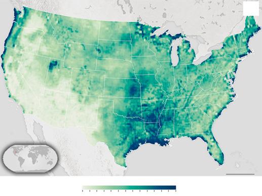 Water vapor has a significant influence on Earth’s climate and energy distribution as it displaces nearly half the trapped heat in an upward and poleward direction and is considered a natural greenhouse gas (Sherwood et al., 2010). Advances in remote sensing have made it possible to monitor water vapor and relative humidity through satellite sensors. Relative humidity is defined as the amount of water available in air with respect to the required water vapor for saturation at a specific temperature. Remotely sensed relative humidity data can be used as an early detection variable to monitor drought (Farahmand et al., 2015). A recently proposed Standardized Relative Humidity Index (SRHI) offers potential information about early drought detection and can be used in conjunction with other indices such as SPI or the Palmer Drought Severity Index (PDSI; Palmer, 1965) for drought monitoring and early warning systems (Farahmand et al., 2015; Figure 1.5). Studies also show that a combination of near‐surface air temperature, vapor pressure deficit, and relative humidity can enhance