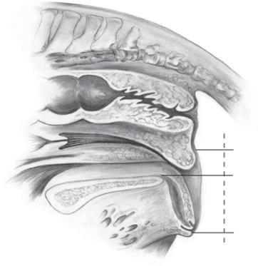 must be unwound to remove. The second type of gauze wrap starts at about the level of the ventral vulvar commissure (Figure 3.2). A small piece of gauze is left hanging and the wrap placed around the tail, moving upward to the tail base. Hair should not be included between layers, with each layer overlapping the previous slightly. Once at the tail base, the gauze is twisted 360 degrees so that the twisted part is on the dorsal tail, while the ventral aspect of the wrap remains flat and untwisted. This allows the twist to bite into the tail hair on the dorsum, preventing slippage of the wrap, while the flat underneath aspect prevents blood occlusion. The wrap is continued downward and is twisted upon every circumferential wrap ending at the point where the wrap began. The small hanging piece of gauze from the beginning is tied to the remaining wrap to prevent the wrap from coming loose. This wrap may be pulled from the top to slide down the tail and removed without having to unwind the wrap when the procedure is completed. This wrap acts like a Chinese finger trap.