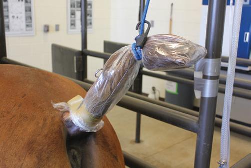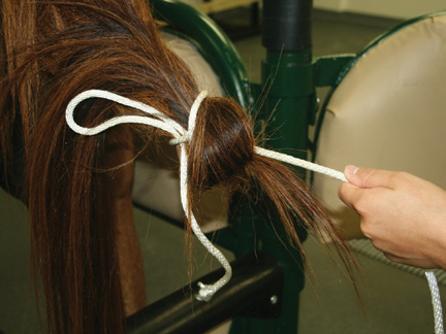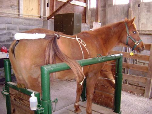 Figure 3.4 Tail wrap tied to the mare with quick release knots.