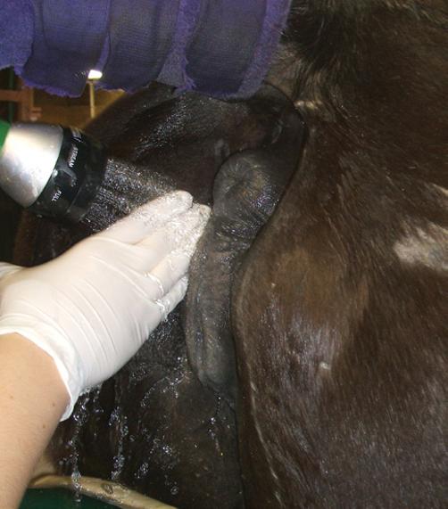 The mare’s perineum should be washed prior to internal reproductive procedures and in preparation for foaling, to remove gross debris and to reduce bacterial numbers. In addition, the perineum is washed prior to perineal surgery such as the placement of a Caslick suture (vulvoplasty). The perineum is also washed as part of the minimum contamination breeding technique to reduce contamination of the uterus during natural cover or artificial insemination.
