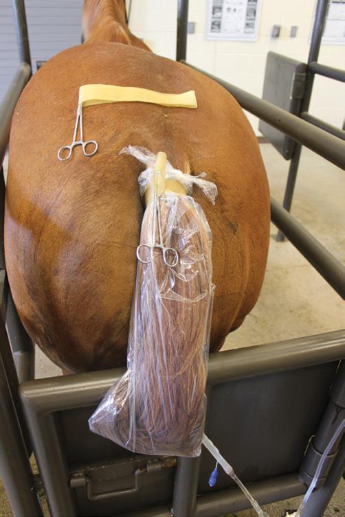 (Figure 3.6). The wrapped tail can be held out of the way by using an elastic cord (Figure 3.7) or being tied to the mare as previously described.