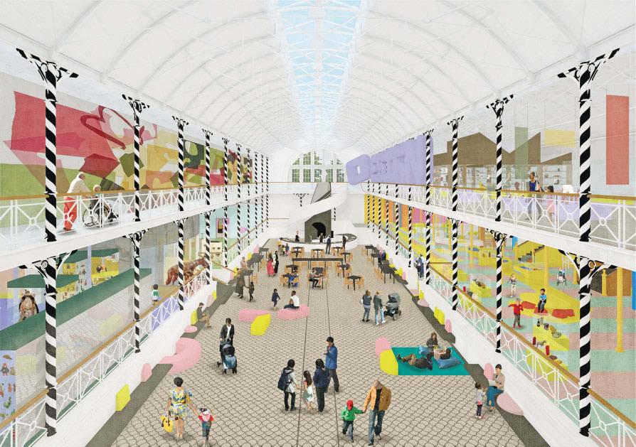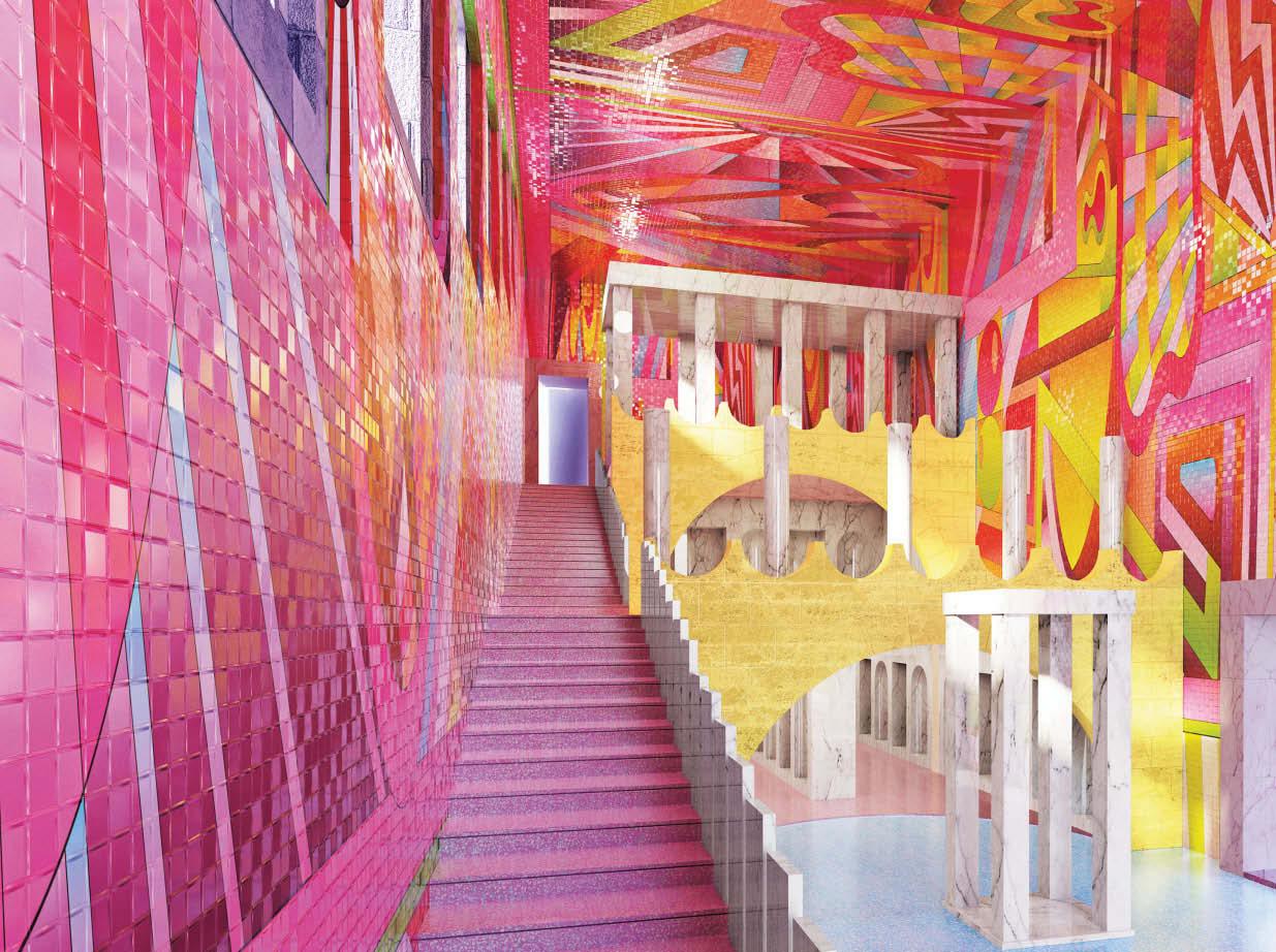 left: The apotheosis of Multiform. Furman reimagines the town hall as a brightly coloured composition of different styles and materials, offering a striking symbolic reflection of the stunning variety of different cultures, identities and histories that make up today’s cities.