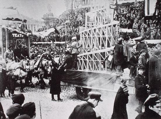 Float of Vladimir Tatlin’s Monument to the Third International, Leningrad, Russia, 1925