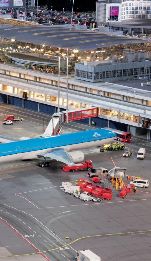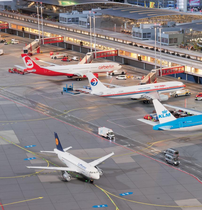 In Miniatur Wunderland’s 150-square-metre (1,600-square-foot) Knuffingen International Airport section, details on rooftops and inside windows add to the model’s realism even if one does not consciously note all the effort that has gone into them. Also, unlike model railways which are mass-produced and sold commercially, many of the Wunderland models were custom works that had to be built by hand.