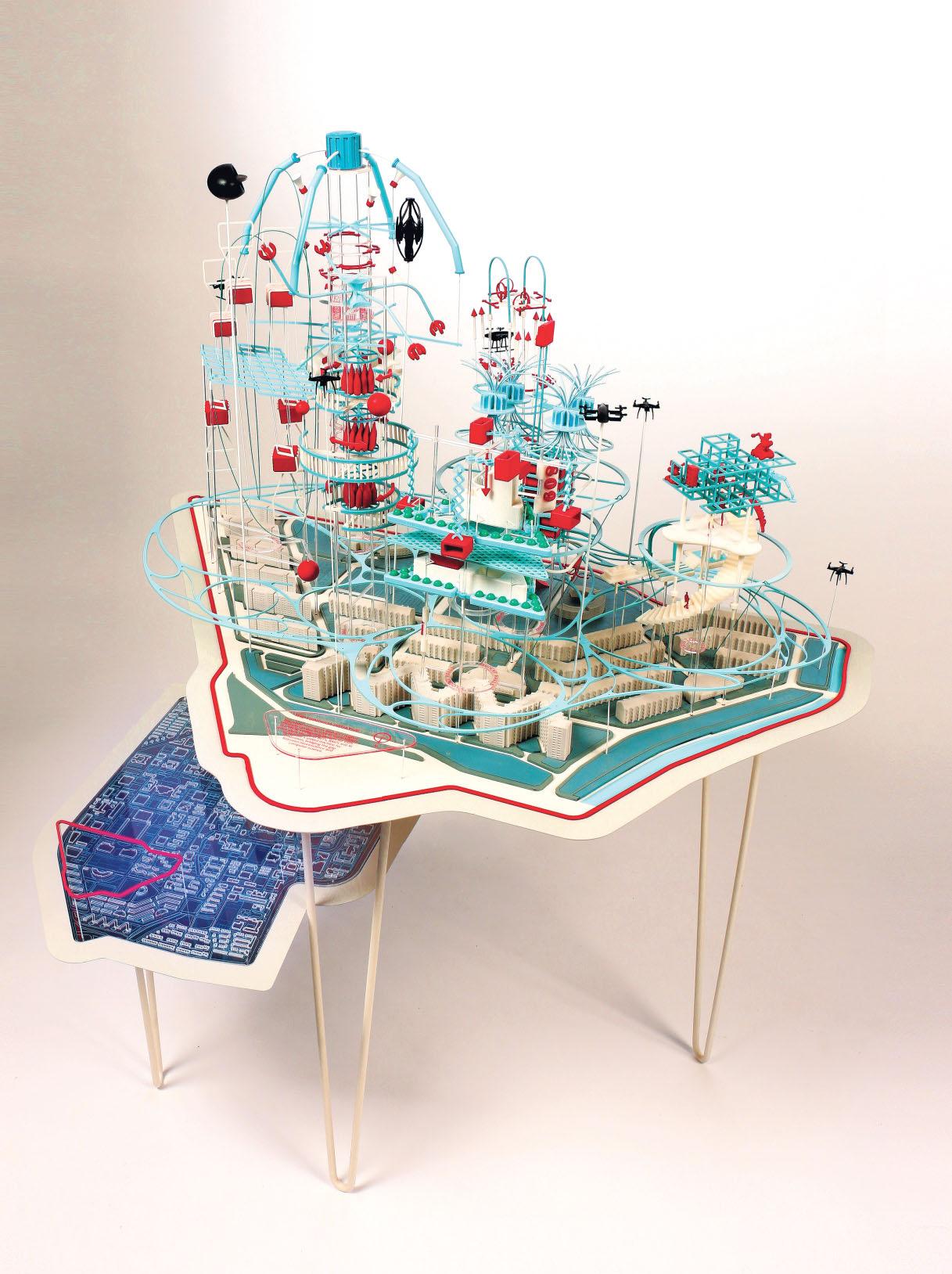 Most models today are more concerned with the future than was the case when I wrote my essay in 1981, and they employ techniques that have developed in the interim – especially digital technologies. One indication of the transformative effects of the digital has been a change in the defining features and ontological status of the model. The model’s physicality previously enabled it to function as both object and representation, and to define a space between two and three dimensions. But today that physicality has waned in importance. The physical model has become more of a by-product than it once was. A 3D model produced from a digital file – whether milled, rendered, integrated into the world of a game or even used to fabricate full-sized building parts – remains primarily an expression of its digital instructions. It can convincingly simulate or instruct, but one source of its aesthetic criticality has been undermined. It doesn’t really matter if the model is a physical object today. It is the scenario expressed through the model that has become primary, and the goal of modelling a process has taken the place of modelling a product.