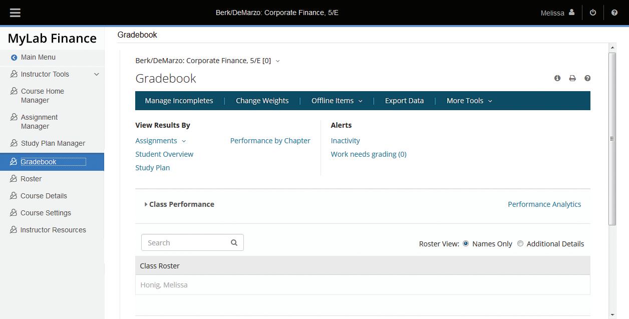 ■ Flexible Gradebook. MyLab Finance saves time by automatically grading students’ work and tracking results in an online Gradebook.