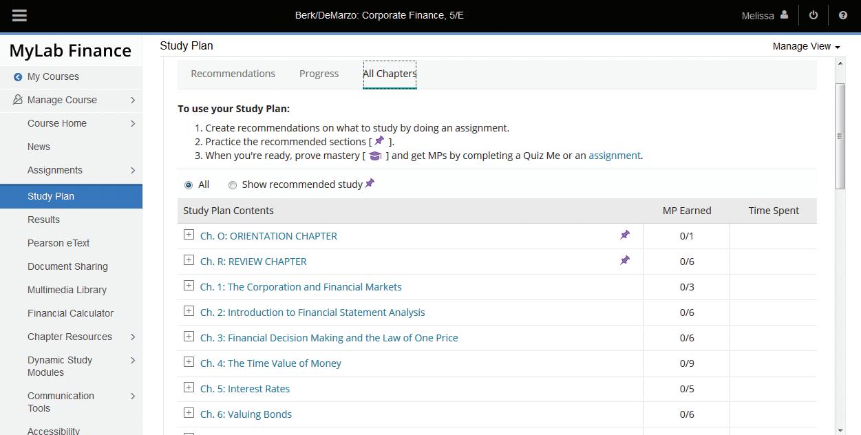 Because practice with homework problems is crucial to learning finance, Corporate Finance is available with MyLab Finance, a fully integrated homework and tutorial system. MyLab Finance revolutionizes homework and practice with material written and developed by Jonathan Berk and Peter DeMarzo.