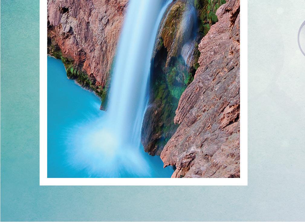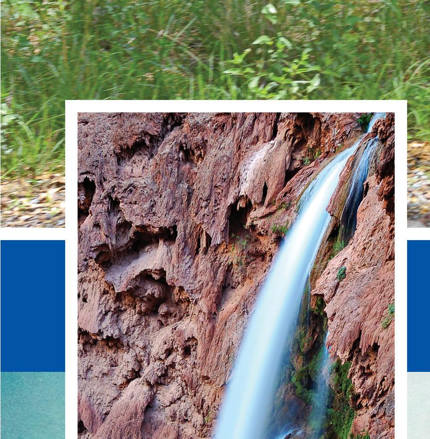 IMAGE 1.18. Macroscopic, microscopic or molecular (a), and symbolic (b) representations of the compound water. Havasupai Falls picture © Scott Lefler, 2007.