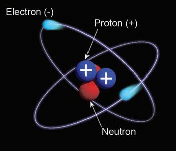 If we could examine a breath of air, we would see that air (like everything else in the universe) is composed of incredibly tiny particles called atoms. We cannot see atoms individually with the naked eye. Yet, if we could see one, we would find electrons whirling at fantastic speeds about an extremely dense center, somewhat like hummingbirds darting and circling about a flower. At this center, or nucleus, are the protons and neutrons. Almost all of the atom’s mass is concentrated here, in a trillionth of the atom’s entire volume. In the nucleus, the proton carries a positive charge, whereas the neutron is electrically neutral. The circling electron carries a negative charge. As long as the total number of protons in the nucleus equals the number of orbiting electrons, the atom as a whole is electrically neutral (see Fig. 1).