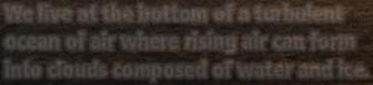 Living on the surface of Earth, we have adapted so completely to our environment of air that we sometimes forget how truly remarkable this substance is. Even though air is tasteless, odorless, and (most of the time) invisible, it protects us from the scorching rays of the sun and provides us with a mixture of gases that allows life to flourish. Because we cannot see, smell, or taste air, it may seem surprising that between your eyes and the pages of this book are trillions of air molecules. Some of these may have been in a cloud only yesterday, or over another continent last week, or perhaps part of the life-giving breath of a person who lived hundreds of years ago.