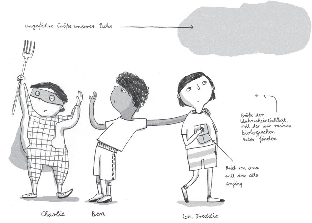 Der Sommer war eigentlich ganz anders geplant. Ben hätte mit seinem Dad und seiner neuen Stiefmutter Becky nach Amerika fliegen sollen, Charlies Eltern wollten mit ihm in irgend so ein Gesundheitskloster für Veganer und bei mir stand Nichtstun mit Dad und Grams (so nenne ich meine Oma) auf dem Programm. Aber dann kam alles ganz anders.