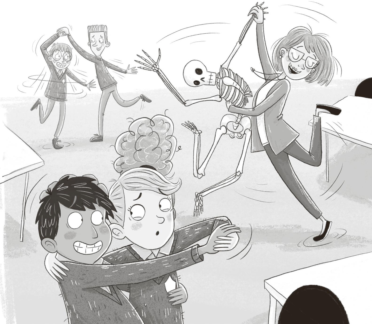 I looked round the classroom. Everyone was acting completely normally! Rahul was doodling in his exercise book; Bethany was twirling her hair and staring out of the window; Ralph was picking his nose. Nobody looked at all like they had any memory of our ballroom boogie!