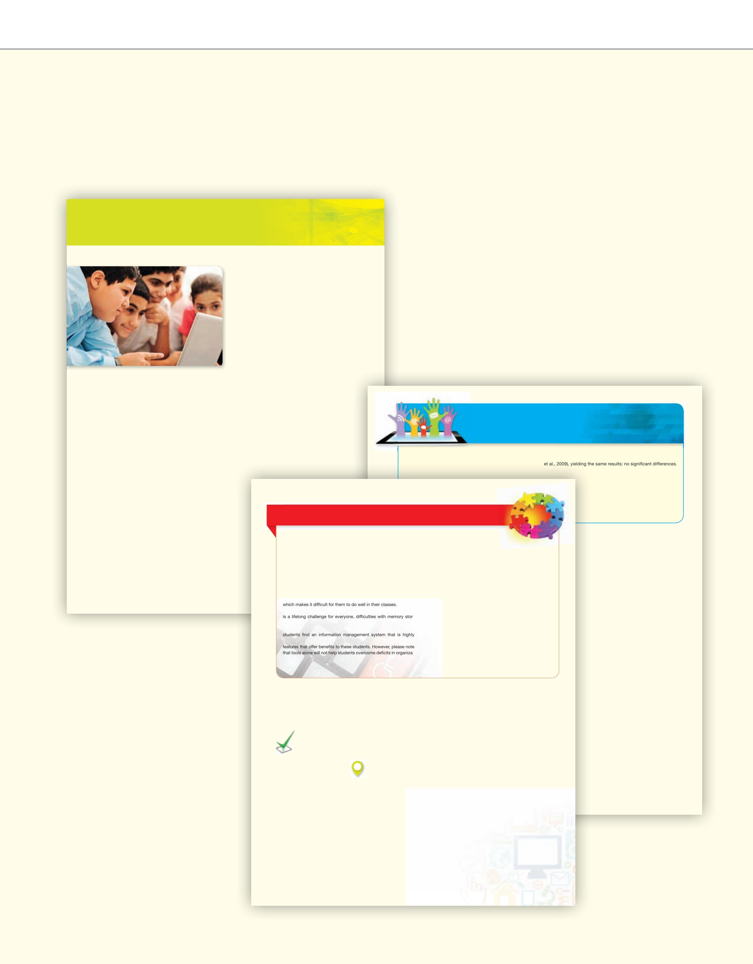 • Improved appearance—So waretools help teachers and students produce polishedlooking materials that resemble the work of professional designers. e quality of classroom products is limited only by the talents and skills of the teachers and students using the tools. Students appreciate receiving attractive-looking materials and nd it rewarding and challenging to produce handsome products of their own.