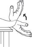 Palmar flexion: Flexion movement of the wrist in the sagittal plane with the volar or anterior side of the hand moving toward the anterior side of the forearm.