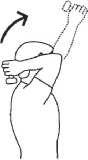 Rotation upward: Rotary movement of the scapula in the frontal plane with the inferior angle of the scapula moving laterally and upward.