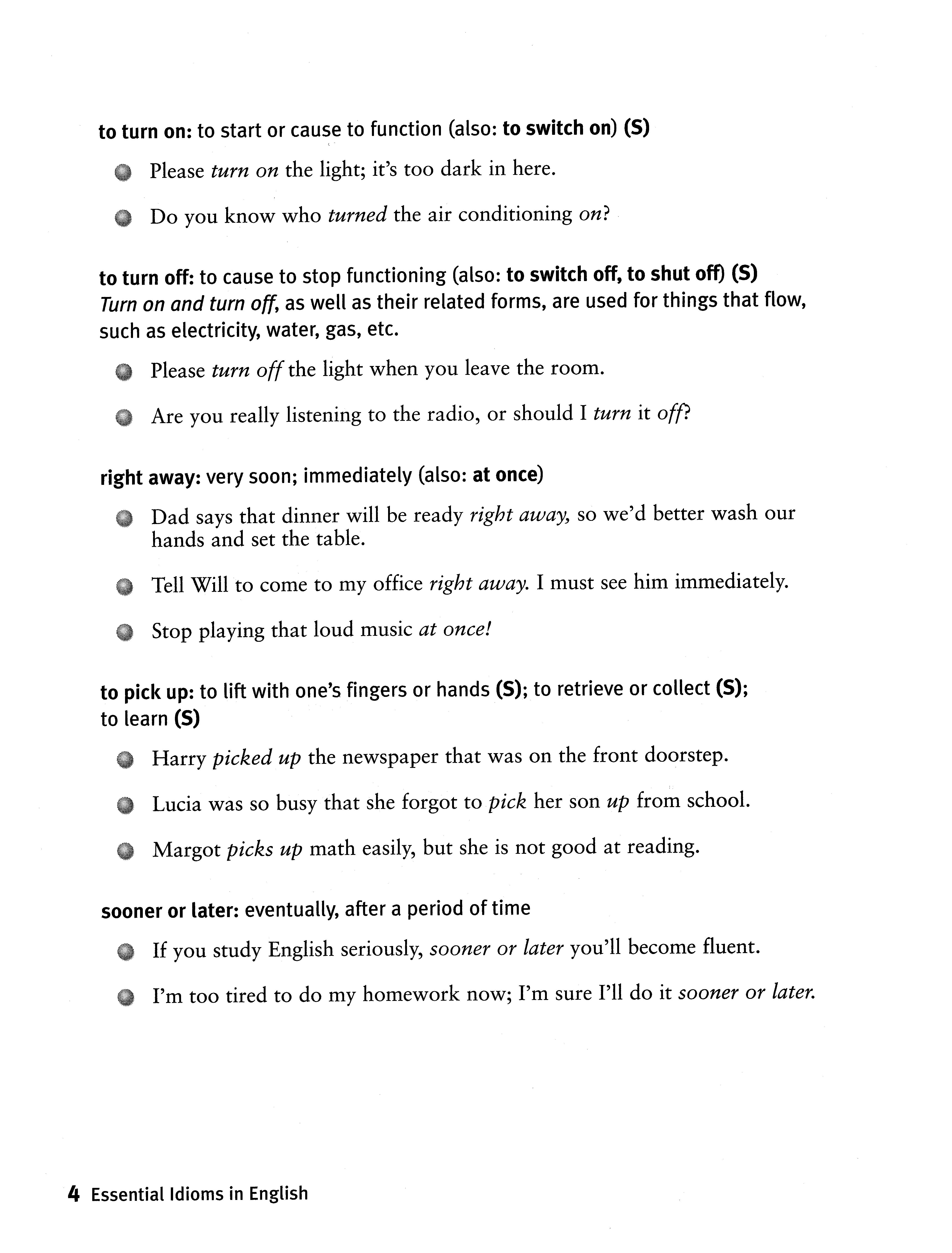 make Essential Idioms especially useful to native speakers of these languages and will provide students with a surer grasp of English idioms and greater confidence in using them.