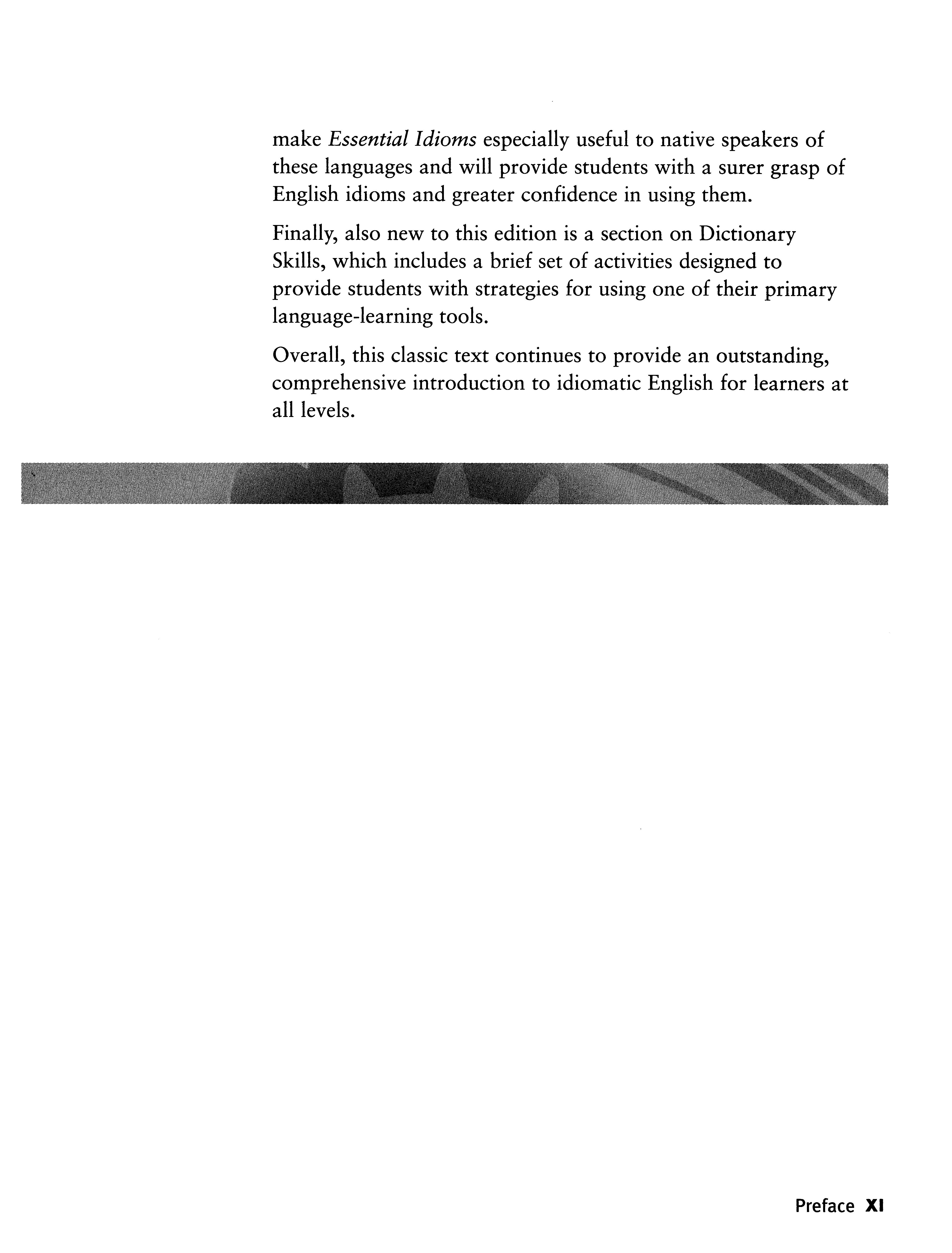 Finally, also new to this edition is a section on Dictionary Skills, which includes a brief set of activities designed to provide students with strategies for using one of their primary language-learning tools.