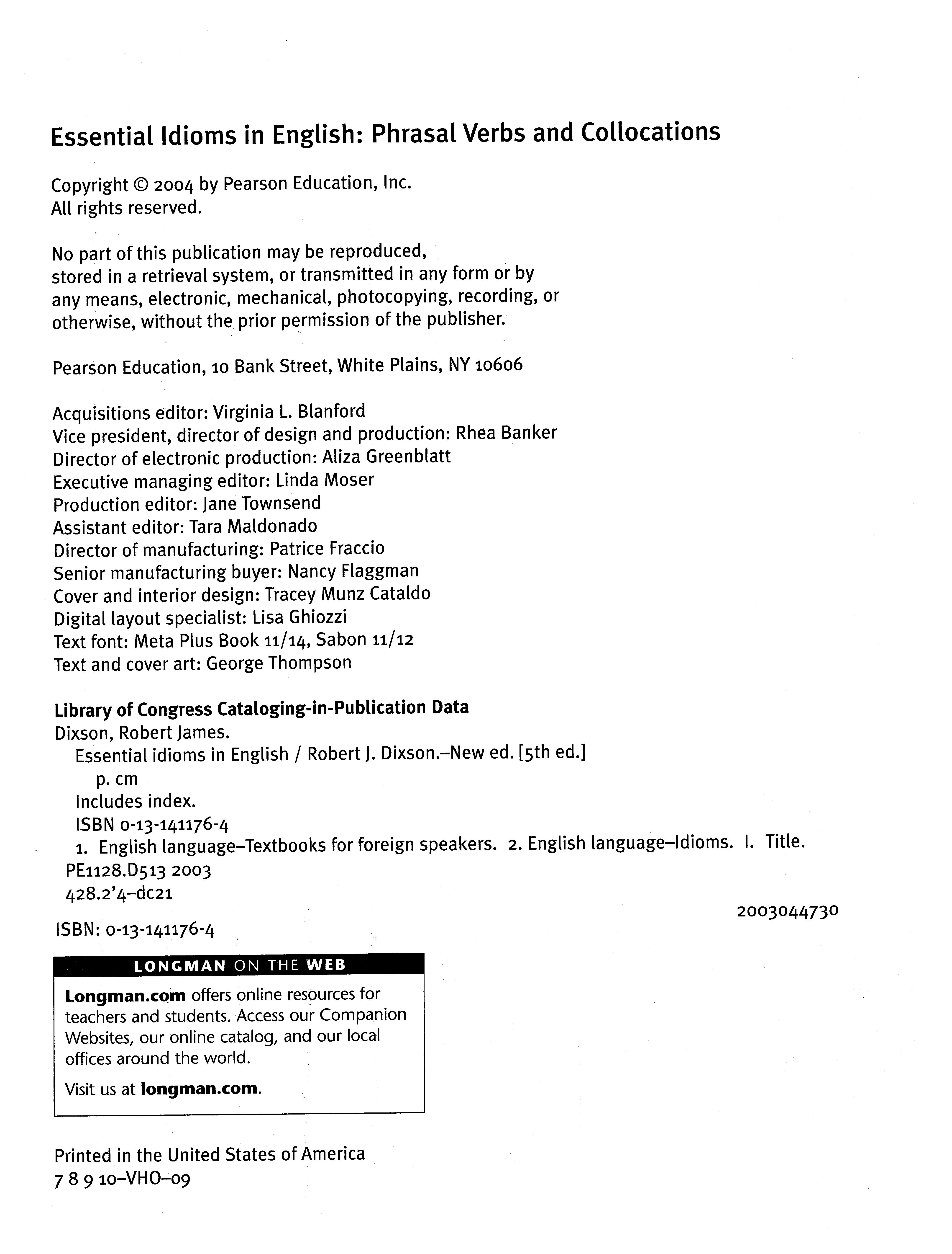 Essential idioms in English I Robert J. Dixson.-New ed. [5th ed.] p. cm