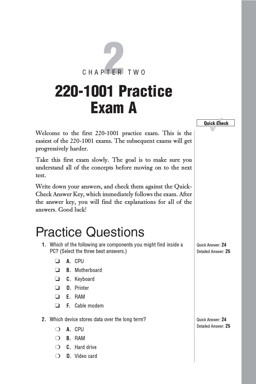 In every chapter devoted to practice exams, you will find the following three elements: