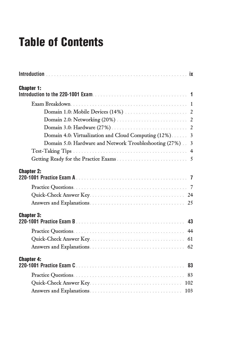 Welcome to CompTIA A+ Core 1 (220-1001) and Core 2 (220-1002) Practice Questions Exam Cram. The sole purpose of this book is to provide you with practice questions that are complete with answers and explanations to help you learn, drill, and review for the CompTIA A+ certification exams. The book offers 480 questions that help you practice each exam domain and help you assess your knowledge before you take the real exams. The detailed answers to every question aid in reinforcing your knowledge about the concepts associated with the 1000 series of the CompTIA A+ exams.