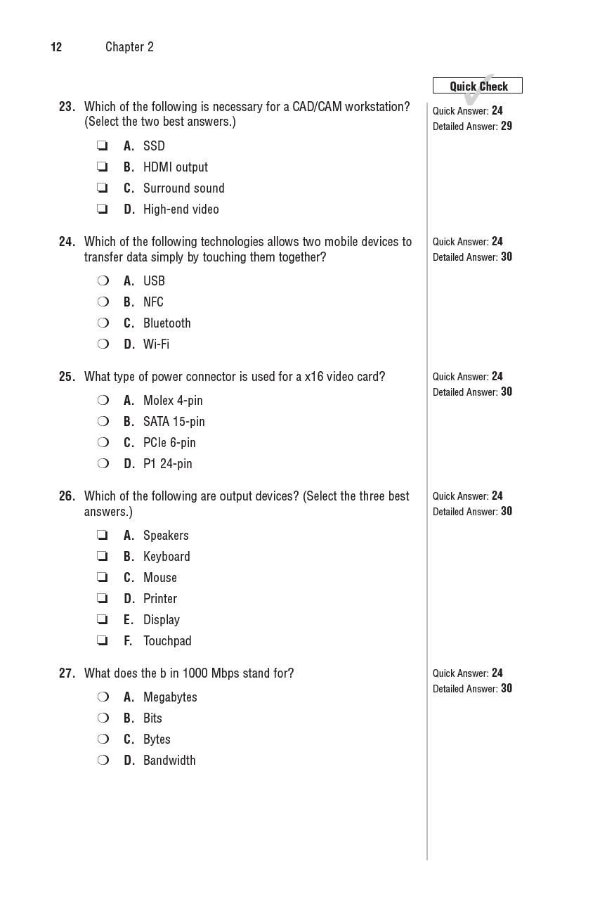 ▶ Quick-Check Answer Key: After you finish answering the questions, you can quickly grade your exam from this section. Only correct answers are given in this section. No explanations are offered yet. Even if you answered a question incorrectly, do not be discouraged. Keep in mind that this is not the real exam. You can always review the topic and revisit the questions again.