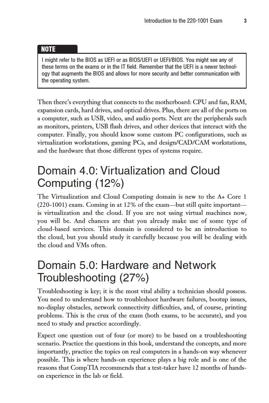 The CompTIA A+ exams are designed for individuals with at least 12 months of hands-on experience in the lab or field. If you have that experience, this book will be an excellent late-stage study tool. However, if you have not acquired that experience, I recommend that you register for a hands-on A+ course or, at the very least, purchase an A+ study guide such as the CompTIA A+ Core 220-1001 and Core 220-1002 Exam Cram textbook or consider my A+ Complete Video Course. After you take the course and/or read the study guide, return to this book as your late-stage test preparation to be used just before taking the real exams.