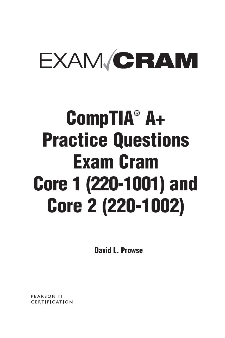 Visit to download the full and correct content document: https://ebookmass.com/product/comptia-a-practice-questions-exam-cram-core-1-2201001-and-core-2-220-1002-premium-edition-and-practice-test-david-l-prowse/