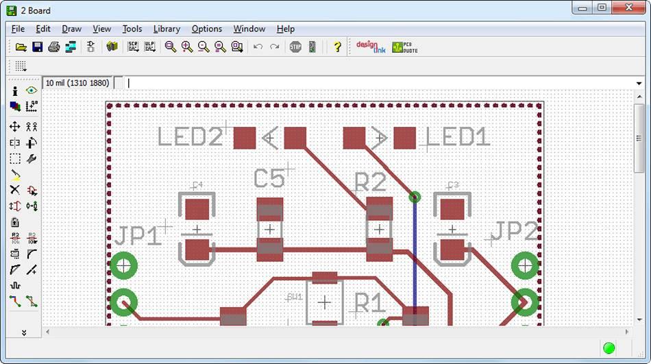 After a schematic design is complete, EAGLE can generate a board file (*.brd) that defines the layout of the actual circuit board. Board files are modified in EAGLE’s board editor, as shown in Figure 1.2.