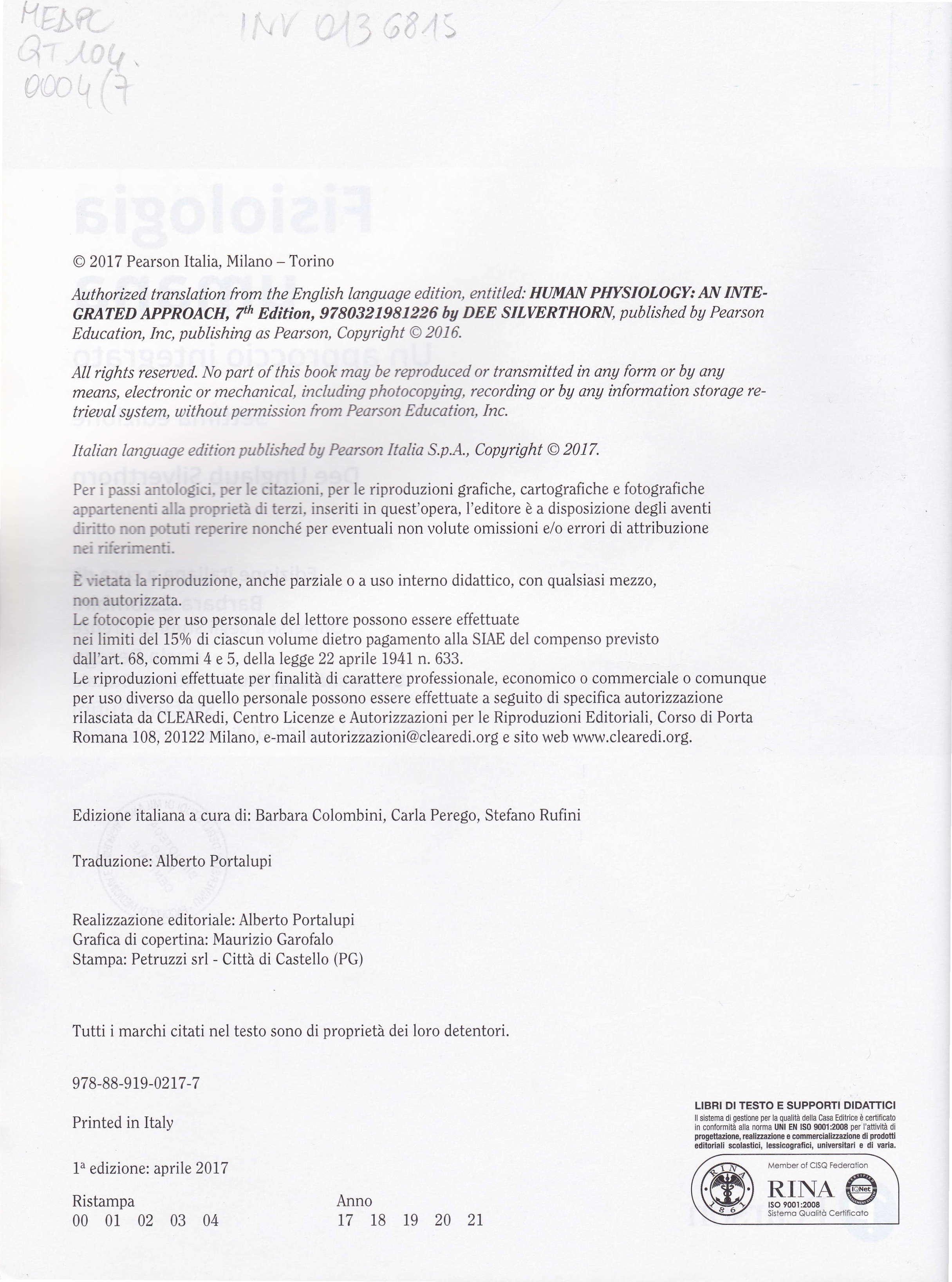 Italian language edition published bg Pearson ltalia S.pA., Copgright @ 2017.