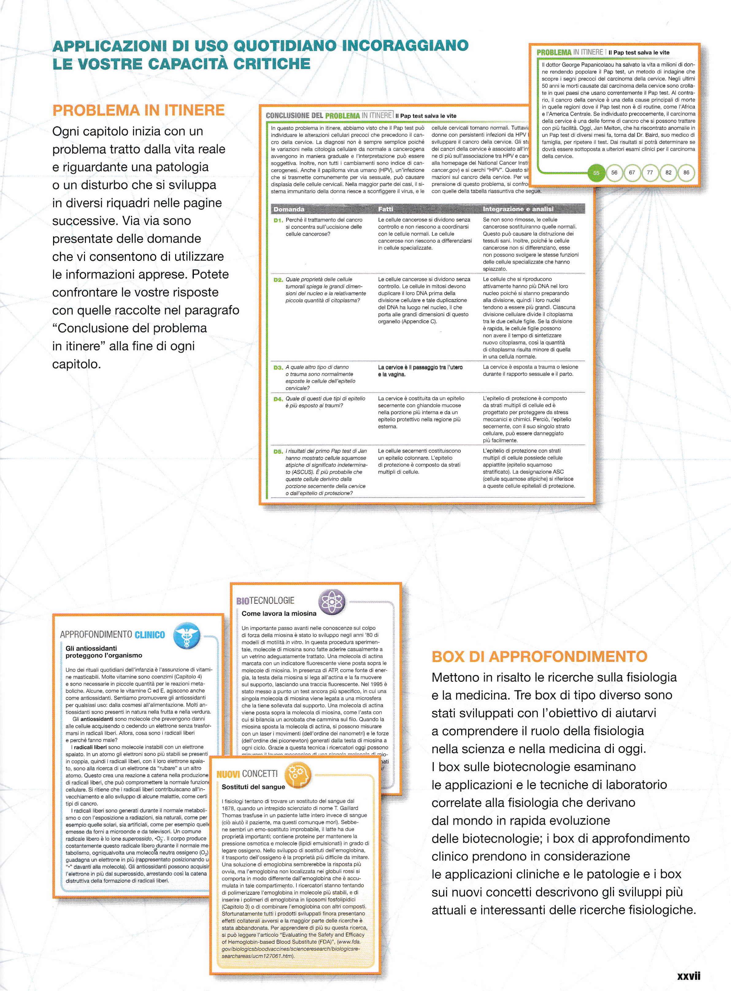 Ogni capitolo inizia con un problema tratto dalla vita reale e riguardante una patologia o un disturbo che si sviluppa in diversi riquadri nelle pagine suqcessive. Via via sono presentate delle domande che vi consentono di utilizzare le informazioni apprese. Potete confrontare Ie vostre risposte con quelle raccolte nel paragrafo "Conclusione del problema in itinere" alla fine di ogni capitolo.