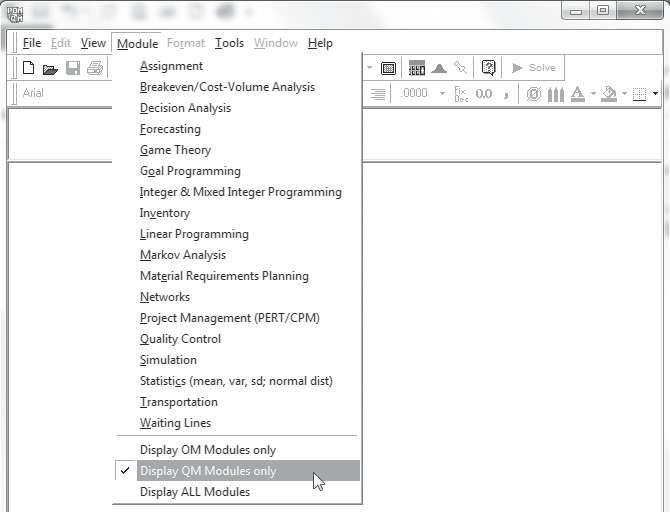 Files for the QM for Windows examples throughout the book can be downloaded from the Companion Website. Opening these files will demonstrate how data are input for the various modules of QM for Windows.