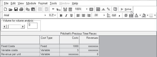 For the Pritchett’s Precious Time Pieces example, the BEP can be computed as follows: