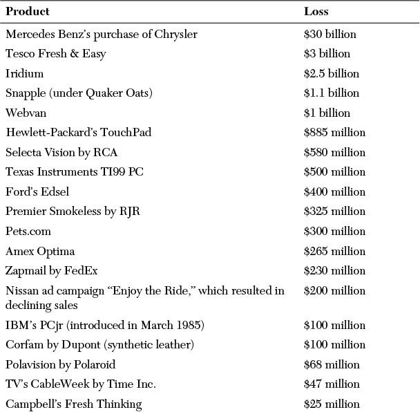 The major downside for these larger companies is that when they do experience failure or underperformance, their exposure tends to be of a magnitude many times larger than that of other companies. Procter & Gamble is such a company. Considered a pioneer in the marketing field, P&G has had its share of expensive flops, such as its fat-free but tasteless snack containing Olestra, which incurred a $250 million loss. Also consider Reflect.com, an online customizable cosmetic offering, which closed after six years in the market at a $60 million loss.10